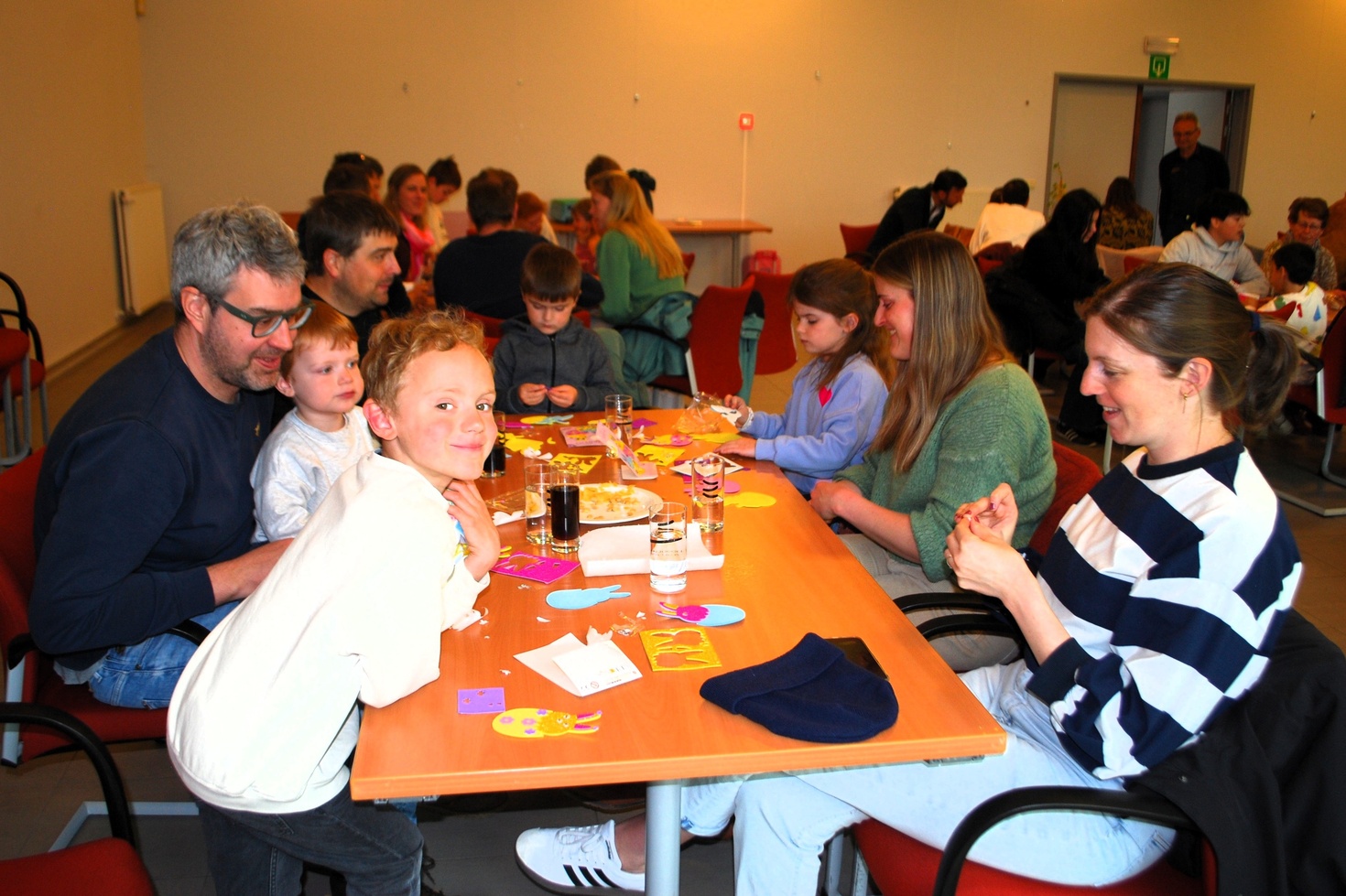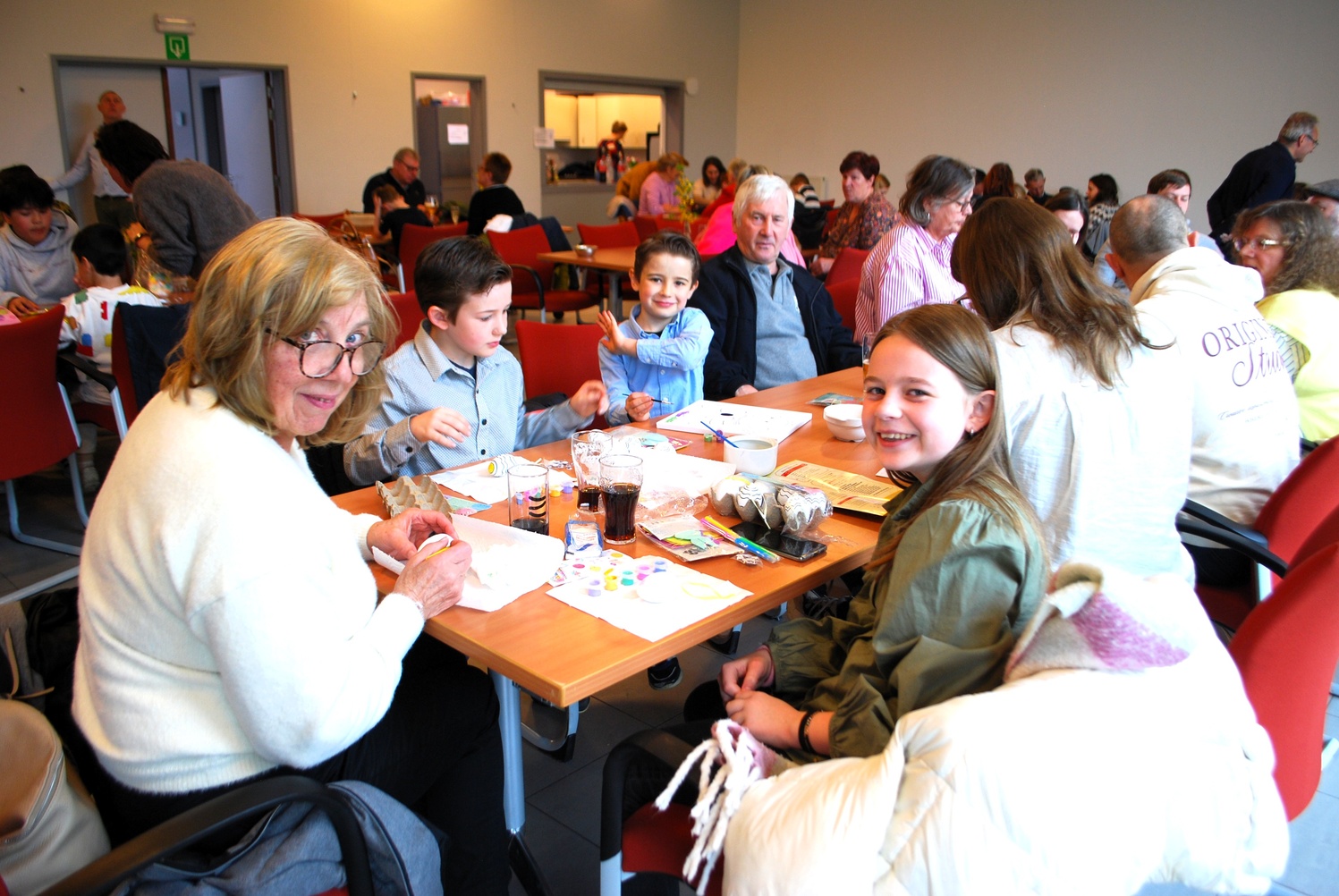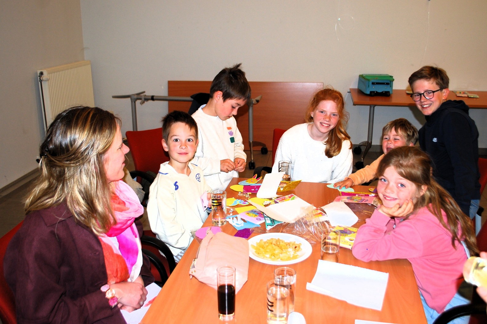 Dit jaar had de paashaas een knutselmoment voorzien. het werd hard gesmaakt door de kinderen.